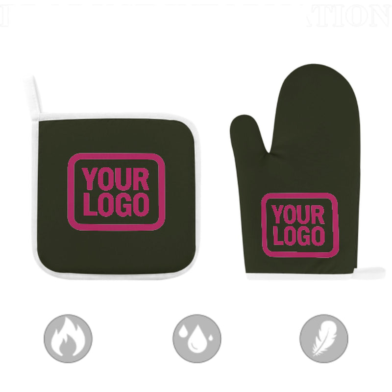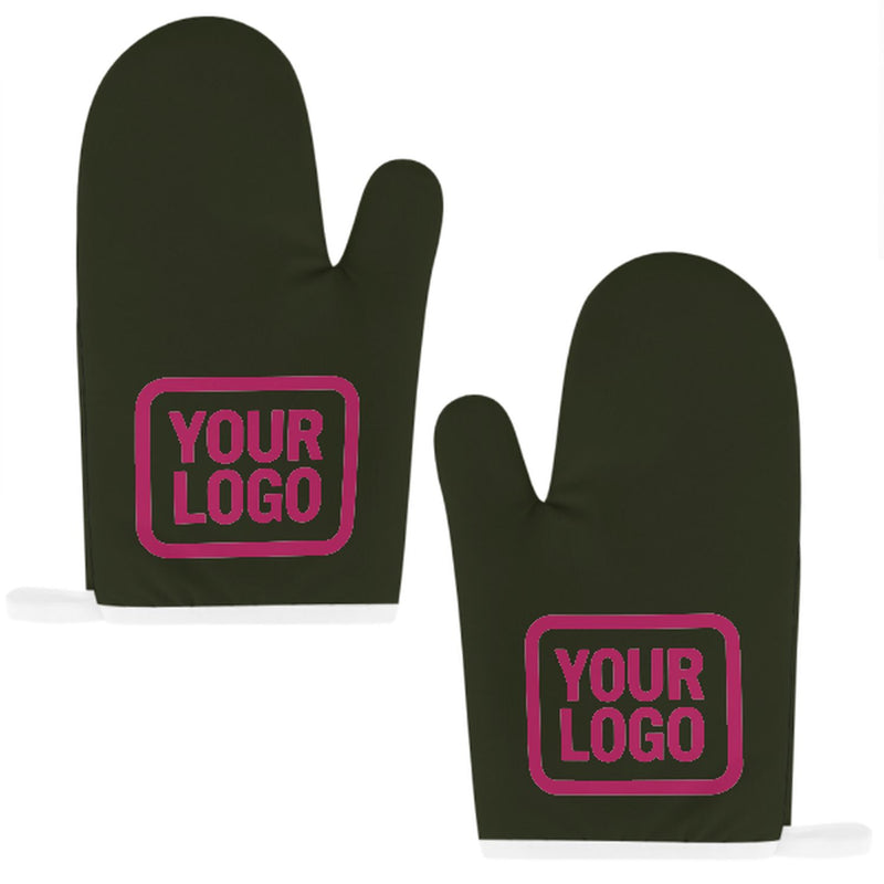 Стилен, термоустойчив комплект от 2 ръкавици за фурна, изработен от издръжлива полиестерна материя, идеален за безопасност и комфорт по време на готвене и печене.
