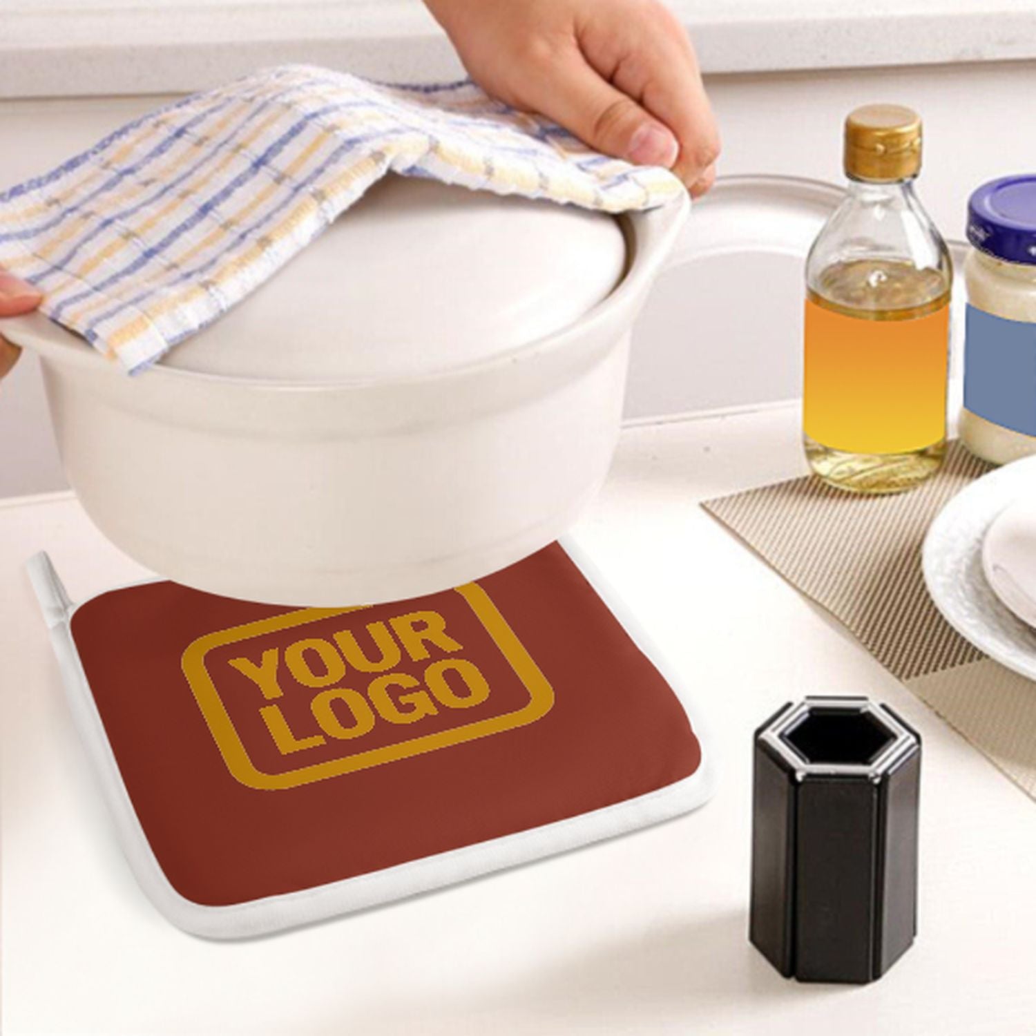 • Hitzeschutz: Verdickte Naturfaser-Isolierung schützt sicher vor heißen Töpfen und Backformen.