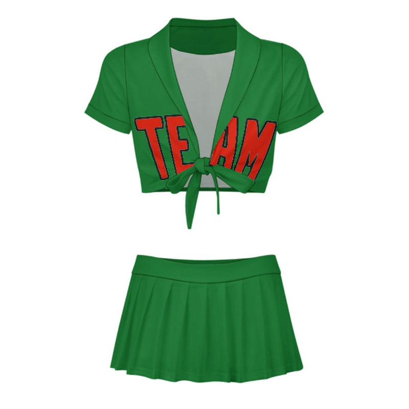 Шивашки -създаден изумруден зелен оранжев мажоретен комплект за мажоретки