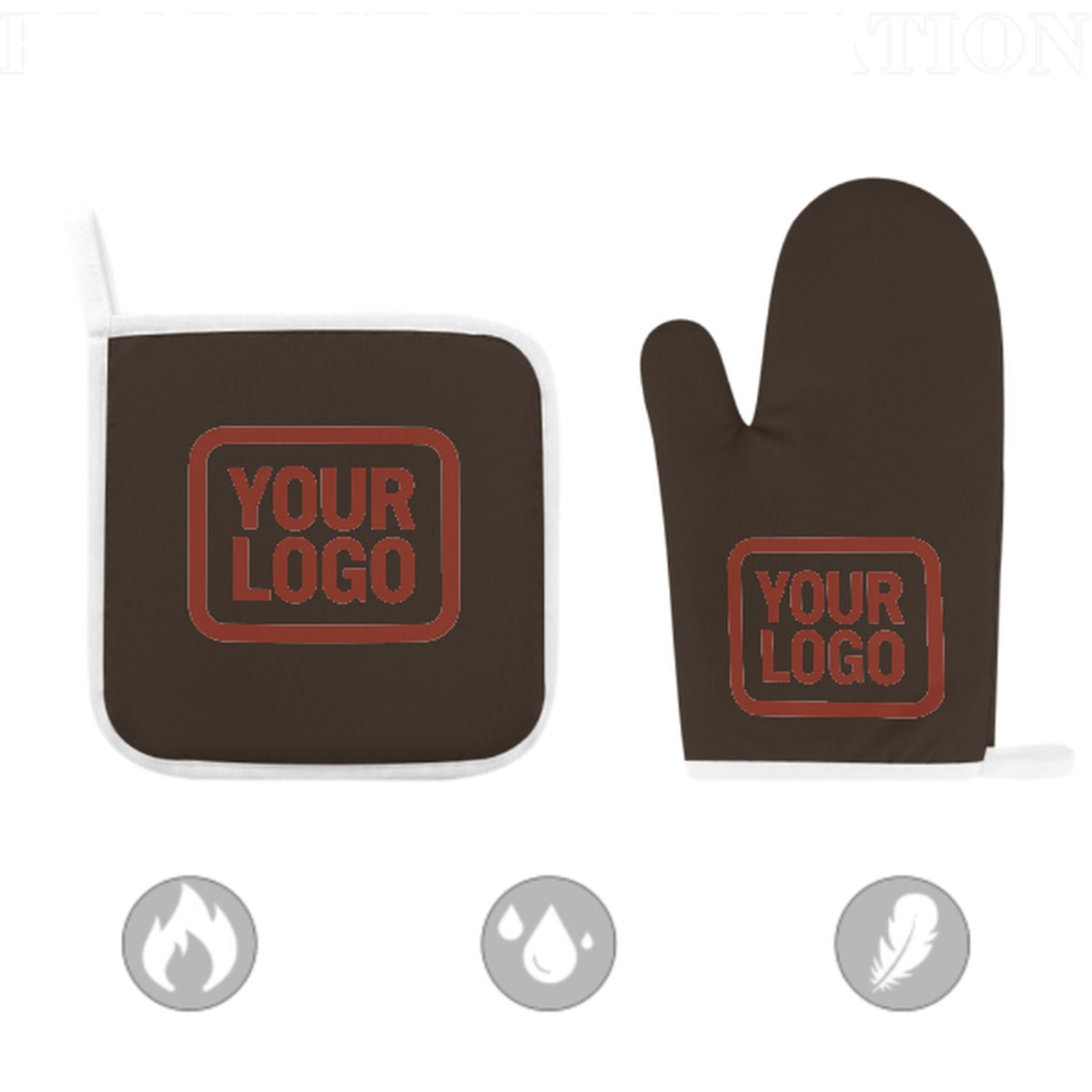 Stylová, žáruvzdorná dvoudílná sada kuchyňských rukavic vyrobená z odolné polyesterové tkaniny, ideální pro bezpečnost a pohodlí při vaření a pečení.
