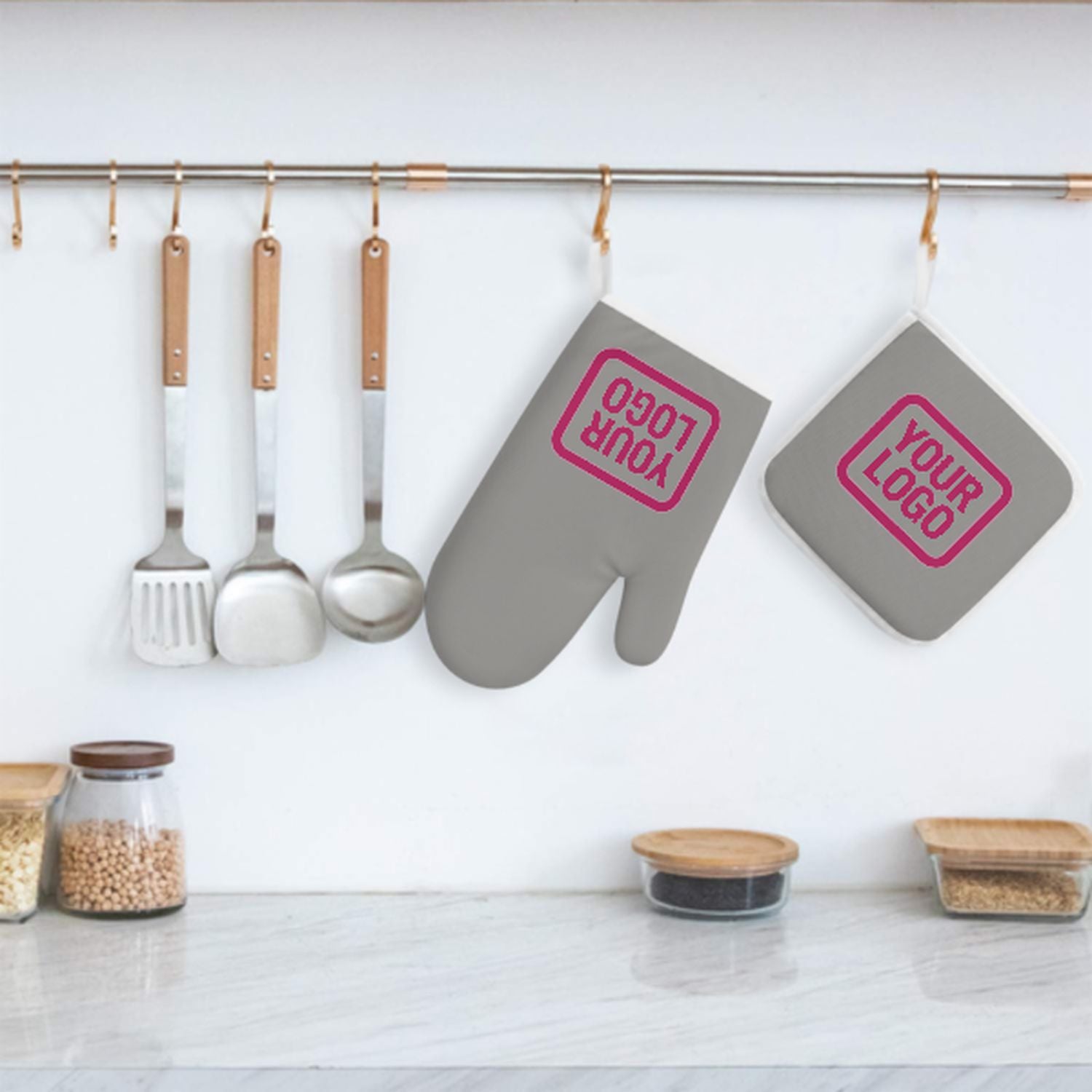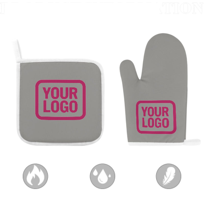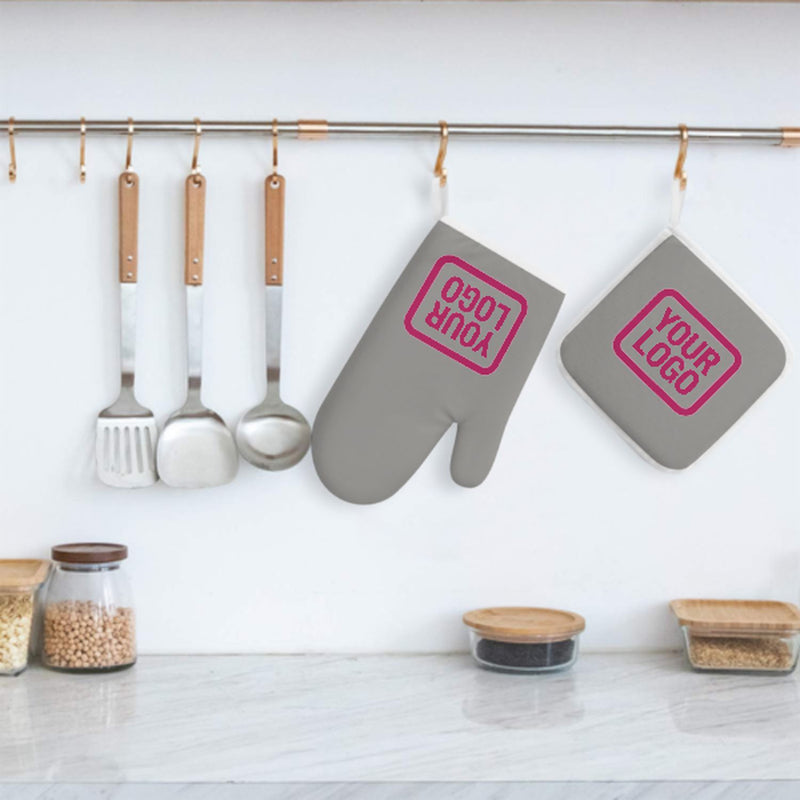 Stylová, žáruvzdorná dvoudílná sada kuchyňských rukavic vyrobená z odolné polyesterové tkaniny, ideální pro bezpečnost a pohodlí při vaření a pečení.