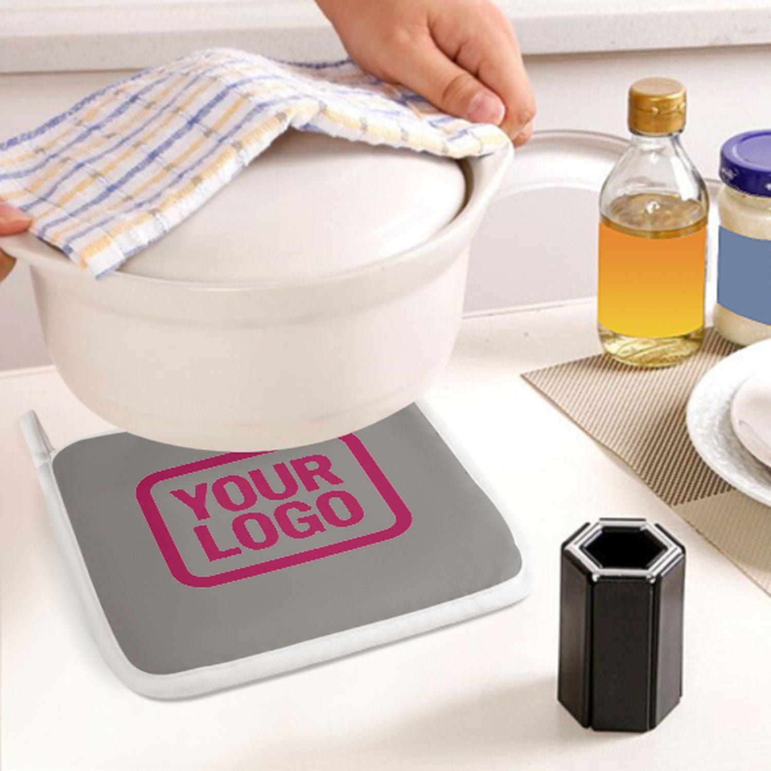 • Hitzeschutz: Verdickte Naturfaser-Isolierung schützt sicher vor heißen Töpfen und Backformen.