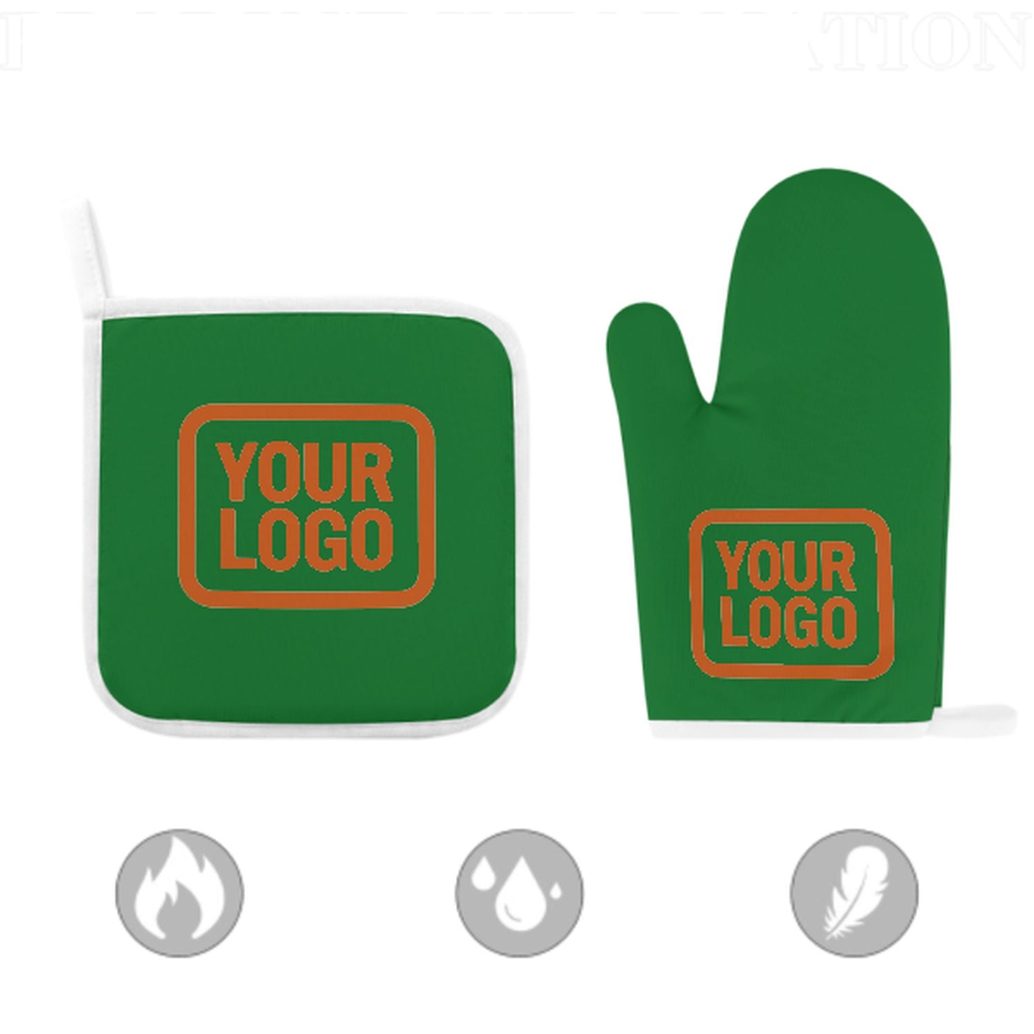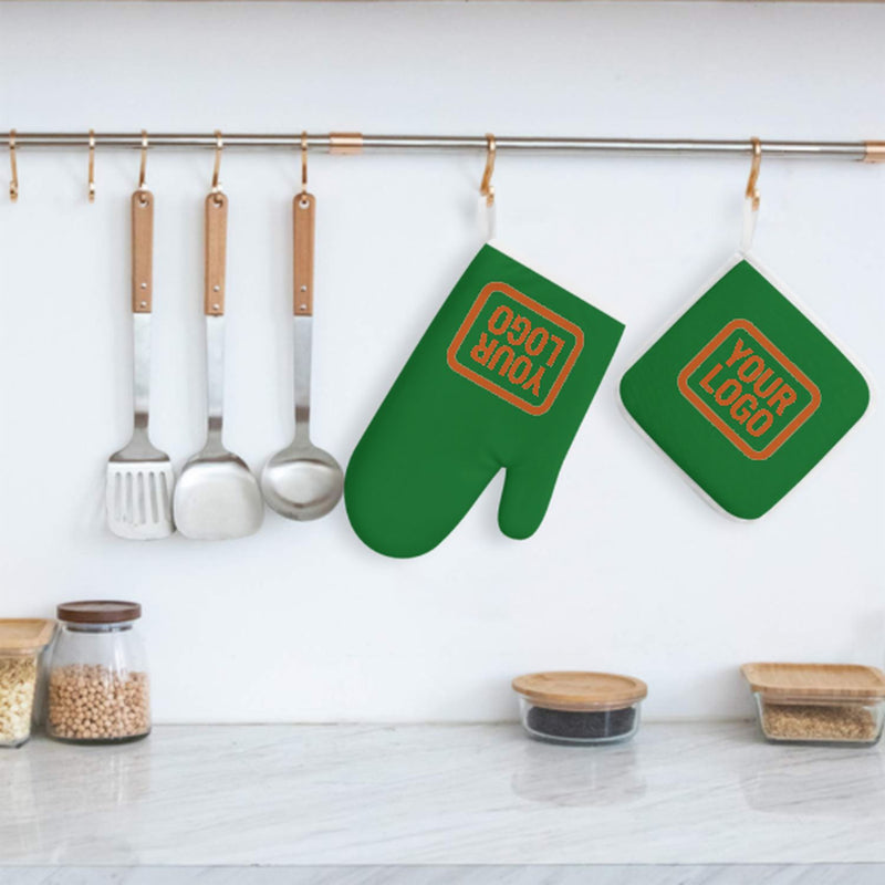 Maßgeschneidertes Smaragdgrün Orange Topfhandschuh Set – 2-teilig
