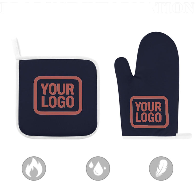 Ein stilvolles, hitzebeständiges 2-teiliges Topfhandschuh-Set aus robustem Polyestergewebe, ideal für Sicherheit und Komfort beim Kochen und Backen.