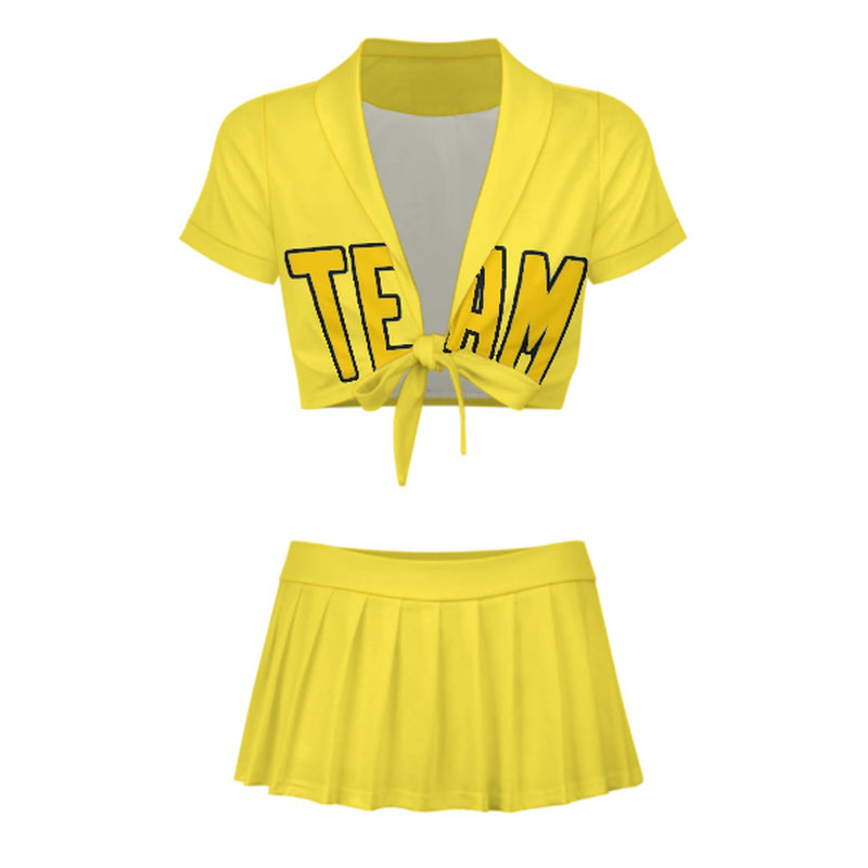 Maßgeschneidertes Blassgelb Gold Cheerleader Outfit Set