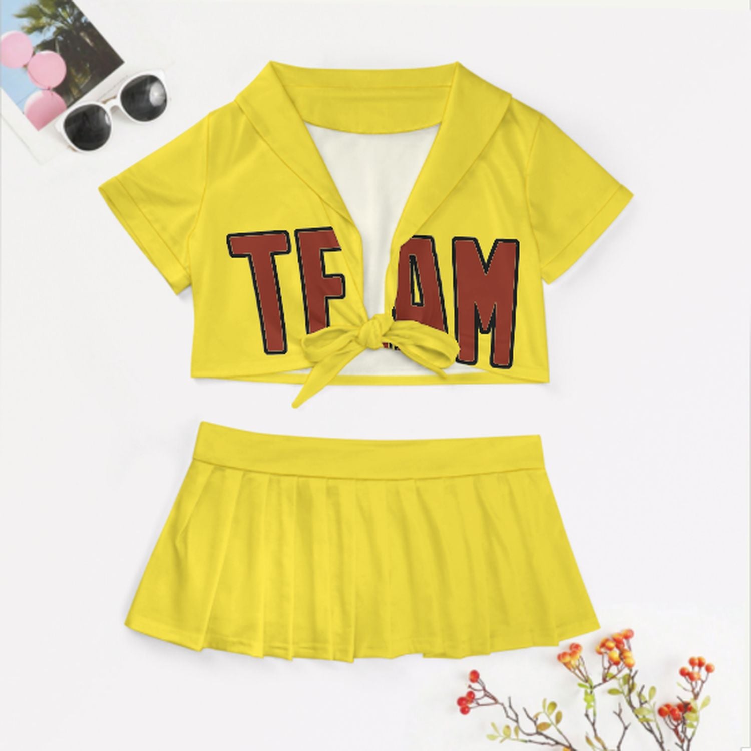 Maßgeschneidertes Blassgelb Korallenrot Cheerleader Outfit Set