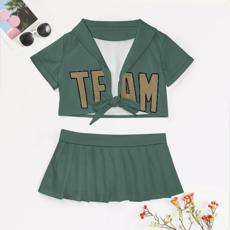 Maßgeschneidertes Blaugrün Hellkhaki Cheerleader Outfit Set