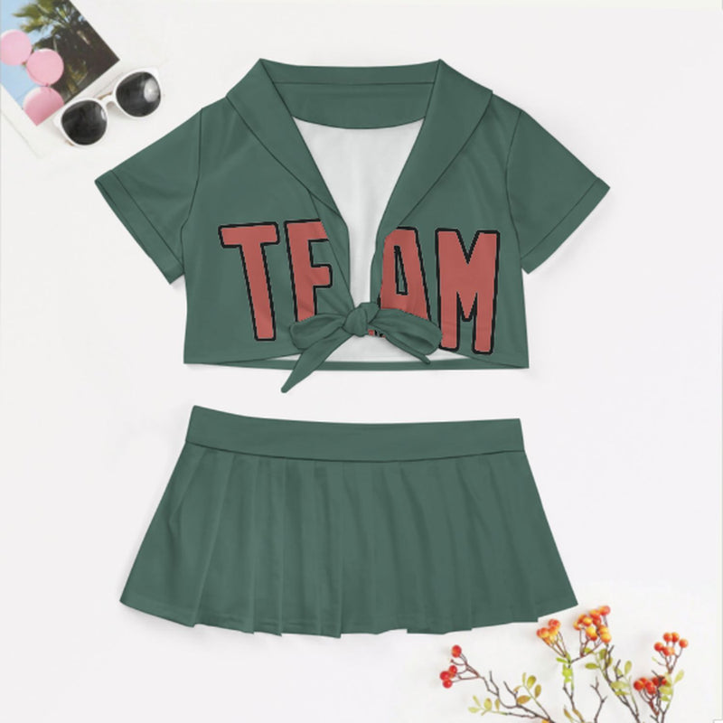 Maßgeschneidertes Blaugrün Kupferrose Cheerleader Outfit Set