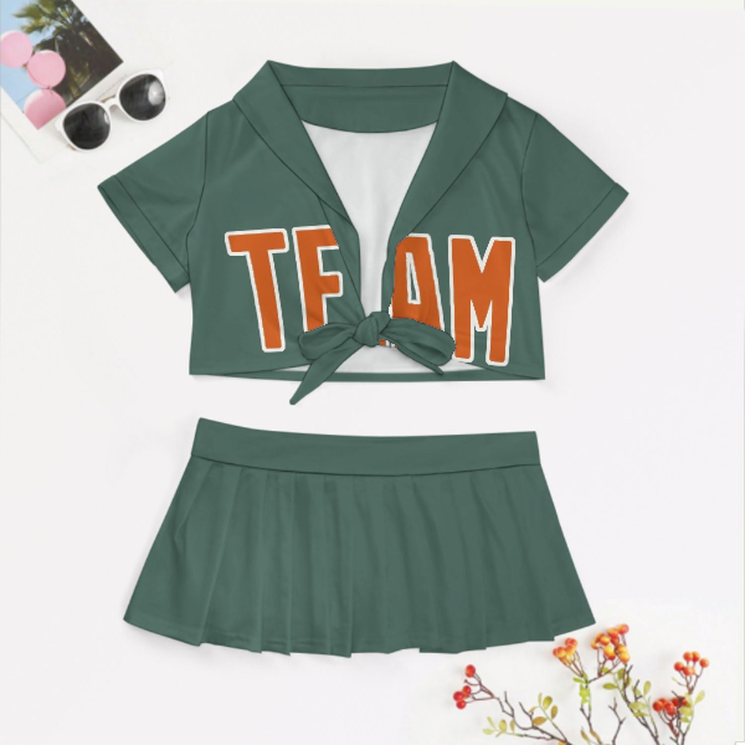 Maßgeschneidertes Blaugrün Orange Cheerleader Outfit Set