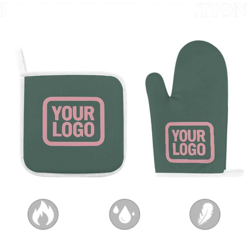 Ein stilvolles, hitzebeständiges 2-teiliges Topfhandschuh-Set aus robustem Polyestergewebe, ideal für Sicherheit und Komfort beim Kochen und Backen.