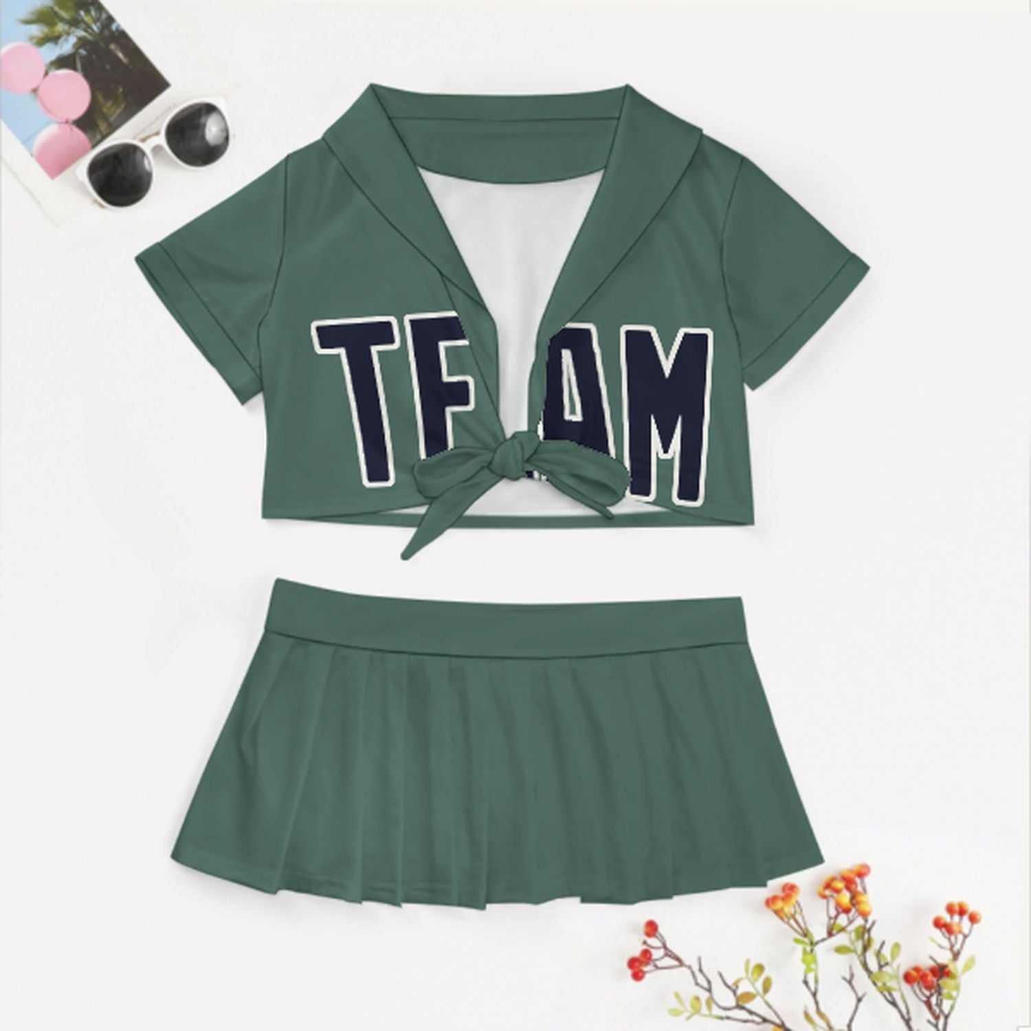 Maßgeschneidertes Blaugrün Stahlblau Cheerleader Outfit Set