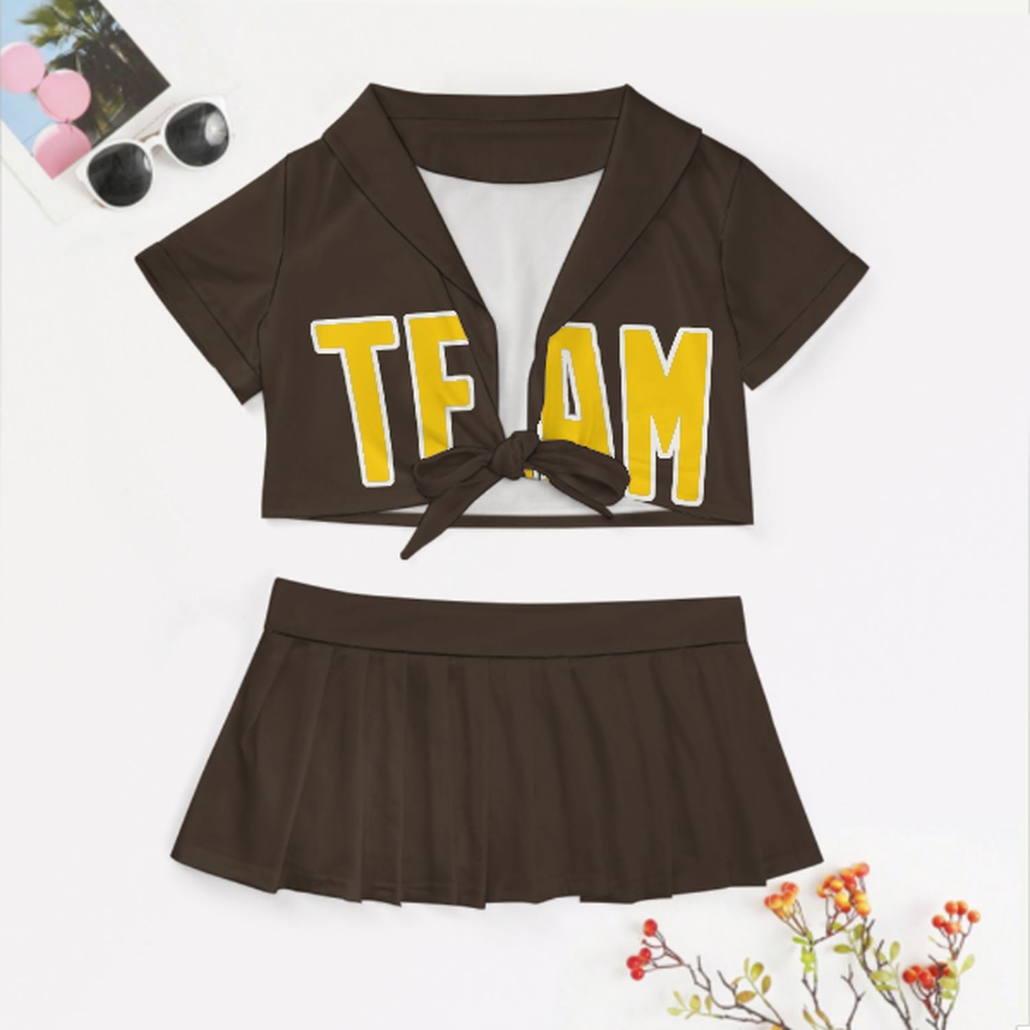 Maßgeschneidertes Braun Gold Cheerleader Outfit Set
