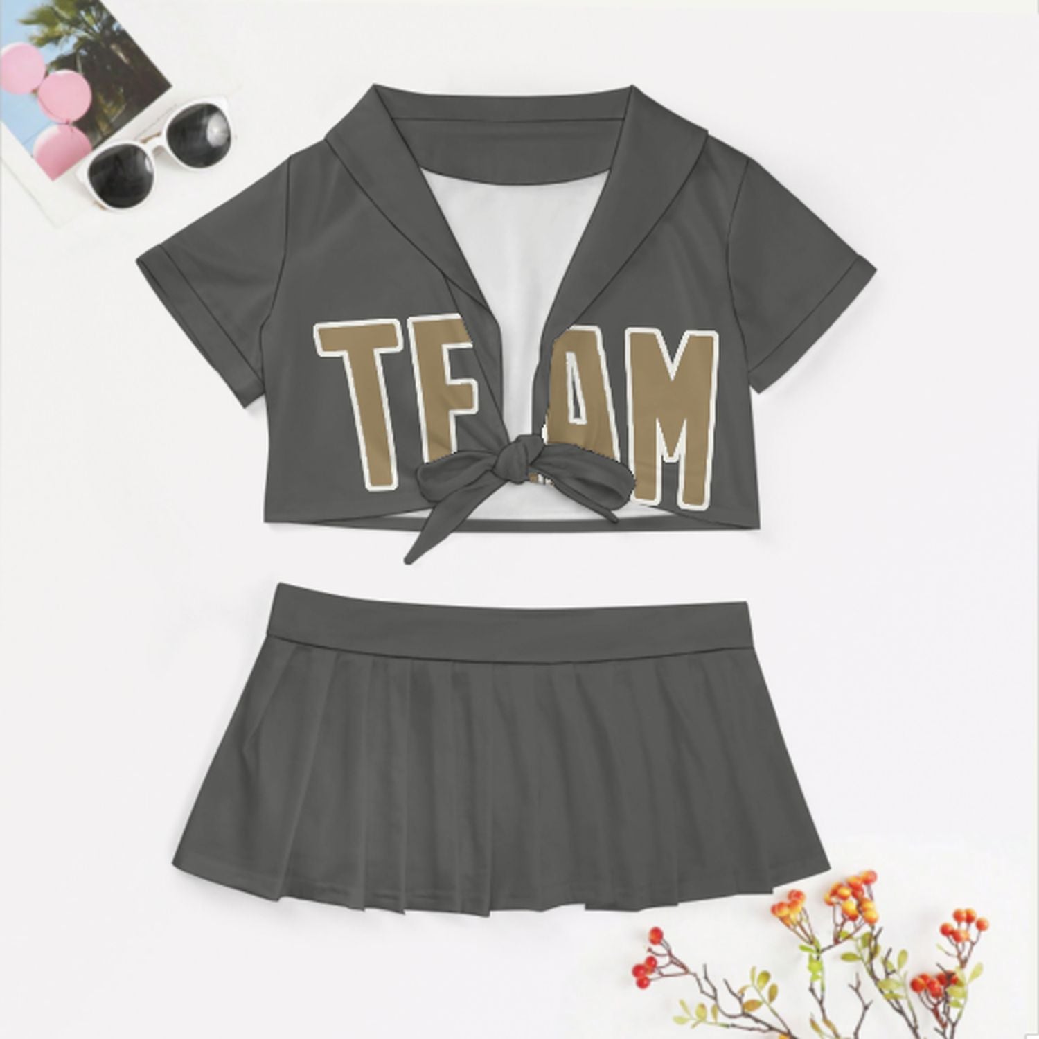 Maßgeschneidertes Dunkelgrau Hellkhaki Cheerleader Outfit Set