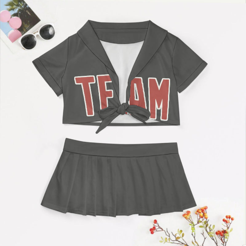 Maßgeschneidertes Dunkelgrau Kupferrose Cheerleader Outfit Set