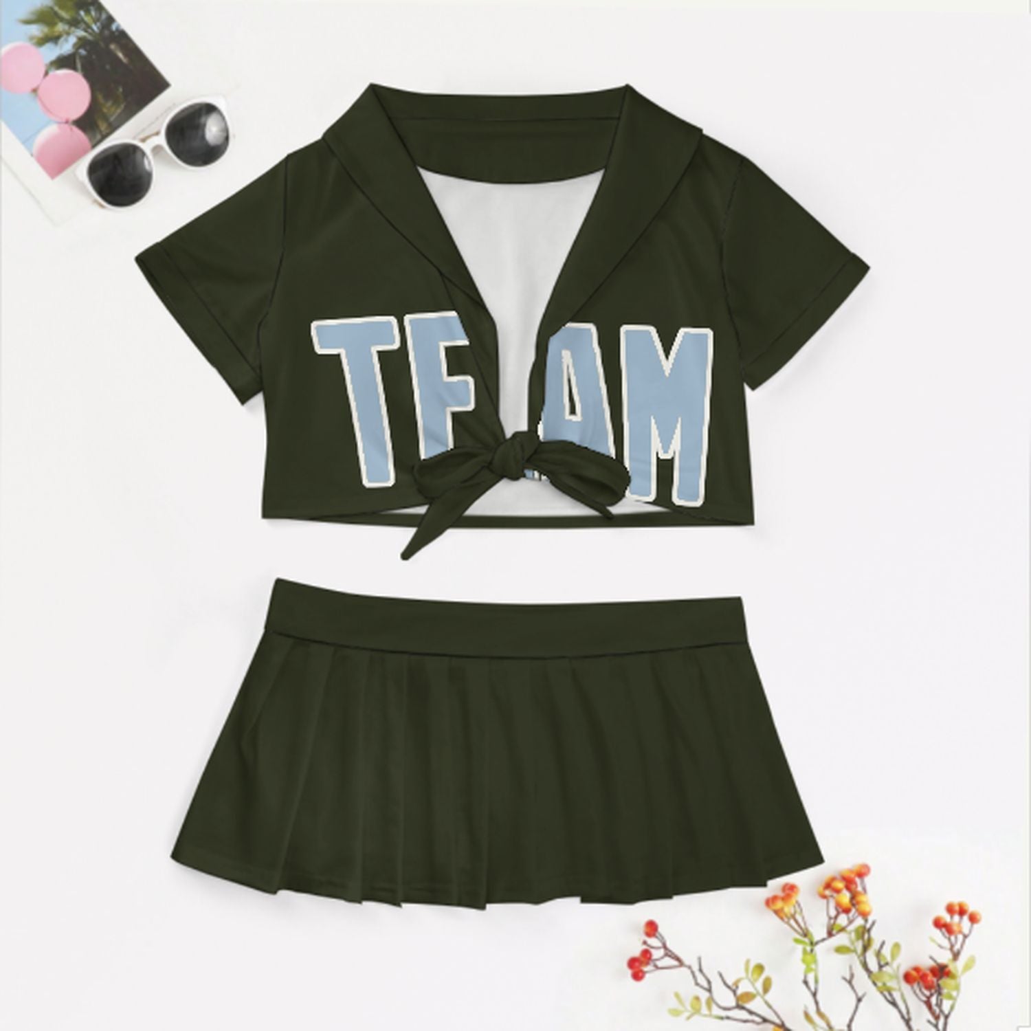 Maßgeschneidertes Dunkles Oliv Hellblau Cheerleader Outfit Set