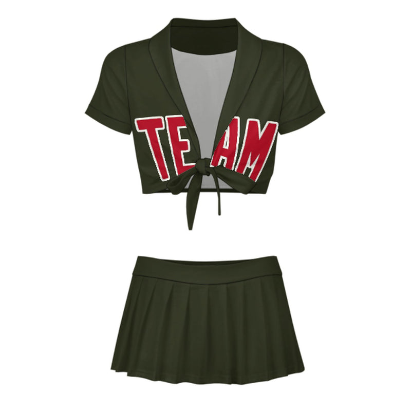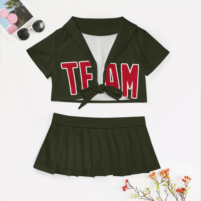 Maßgeschneidertes Dunkles Oliv Rot Cheerleader Outfit Set