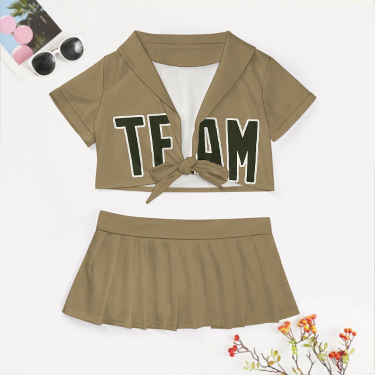 Maßgeschneidertes Hellkhaki Dunkles Oliv Cheerleader Outfit Set
