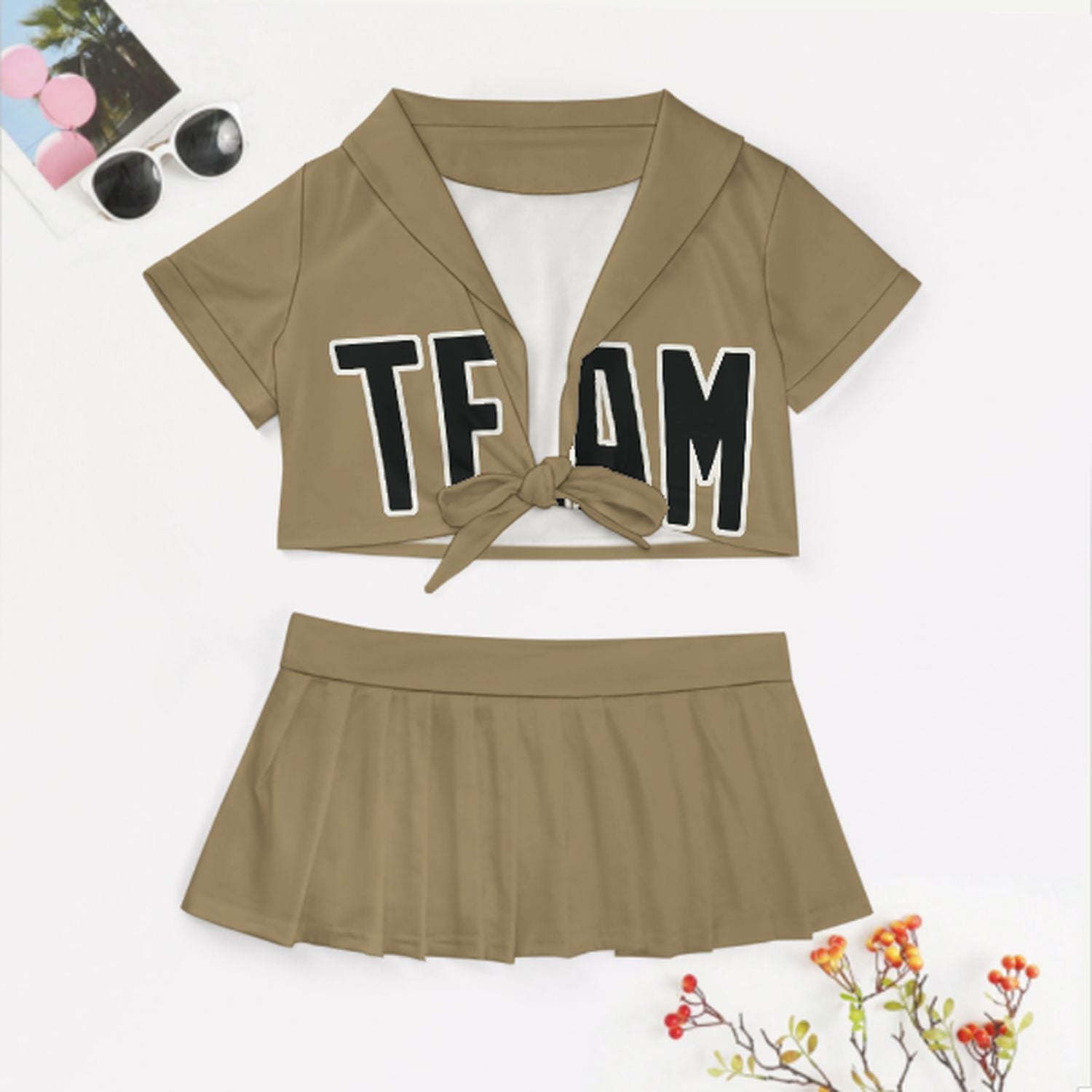 Maßgeschneidertes Hellkhaki Schwarz Cheerleader Outfit Set
