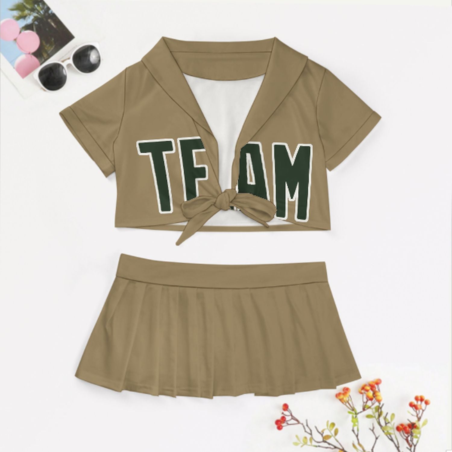 Maßgeschneidertes Hellkhaki Tannengrün Cheerleader Outfit Set