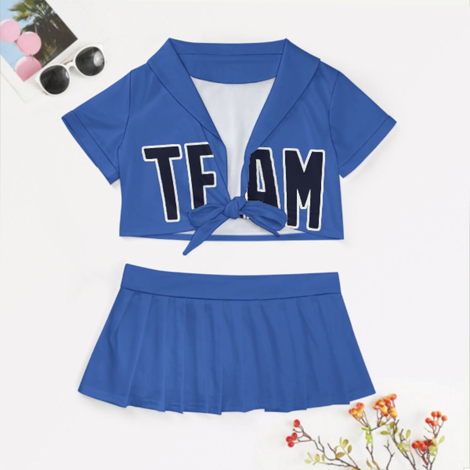 Maßgeschneidertes Himmelblau Stahlblau Cheerleader Outfit Set