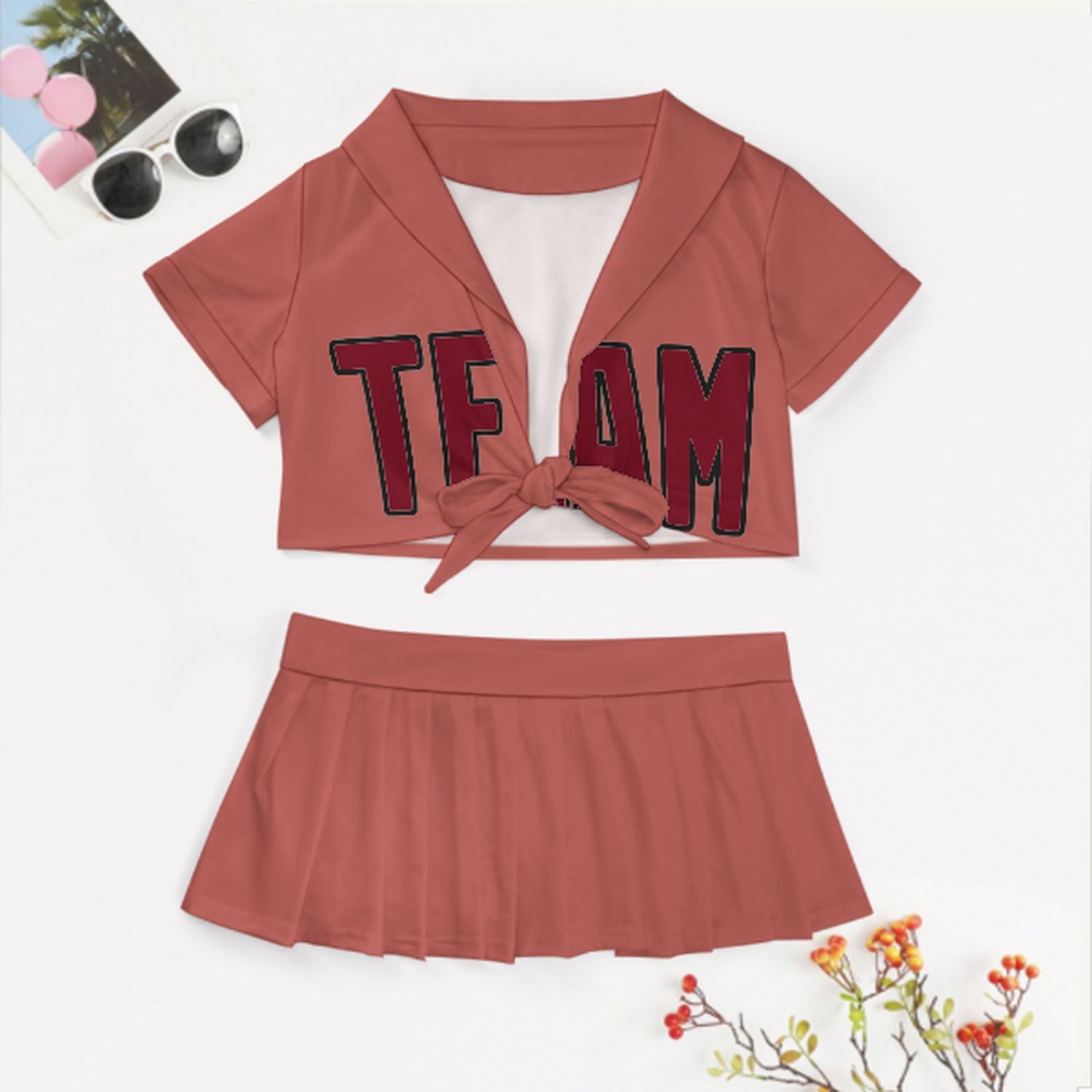 Maßgeschneidertes Kupferrose Karmesinrot Cheerleader Outfit Set