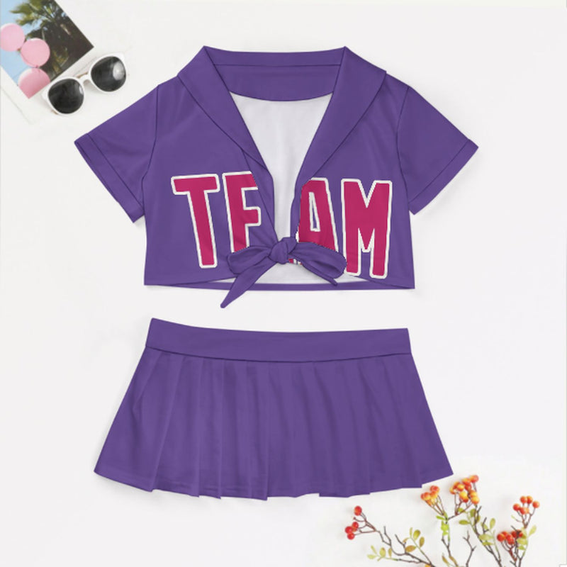 Maßgeschneidertes Lavendel Rosarot Cheerleader Outfit Set