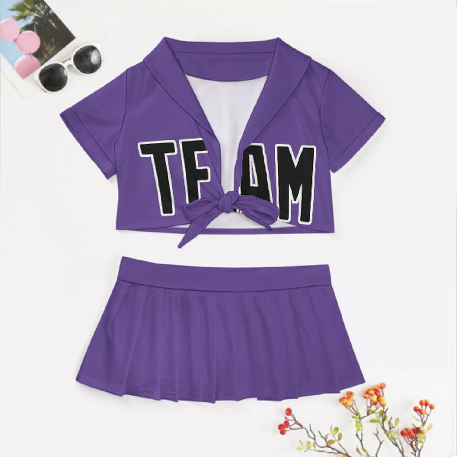 Maßgeschneidertes Lavendel Schwarz Cheerleader Outfit Set