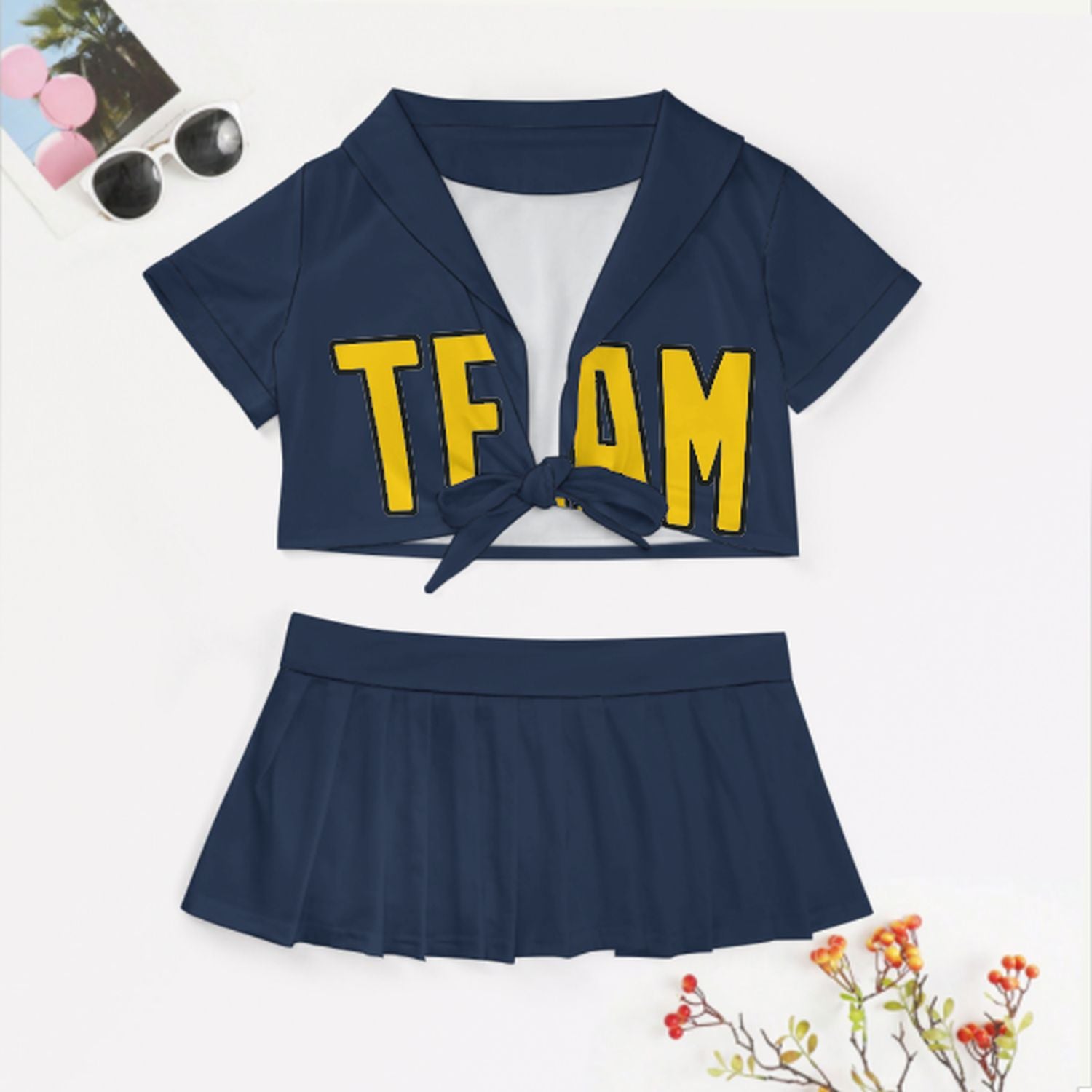 Maßgeschneidertes Marineblau Gold Cheerleader Outfit Set