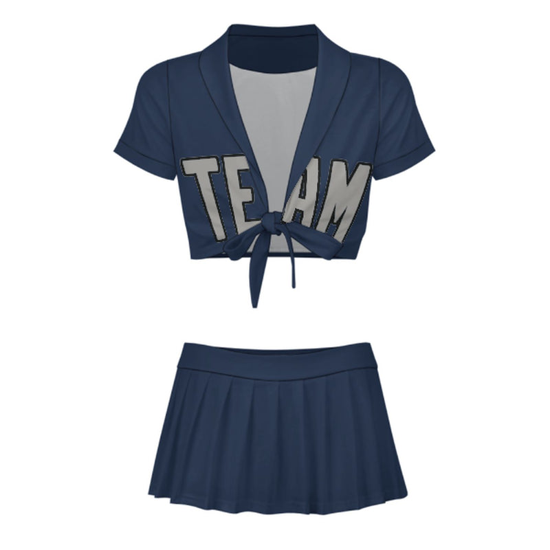 Maßgeschneidertes Marineblau Grau Cheerleader Outfit Set