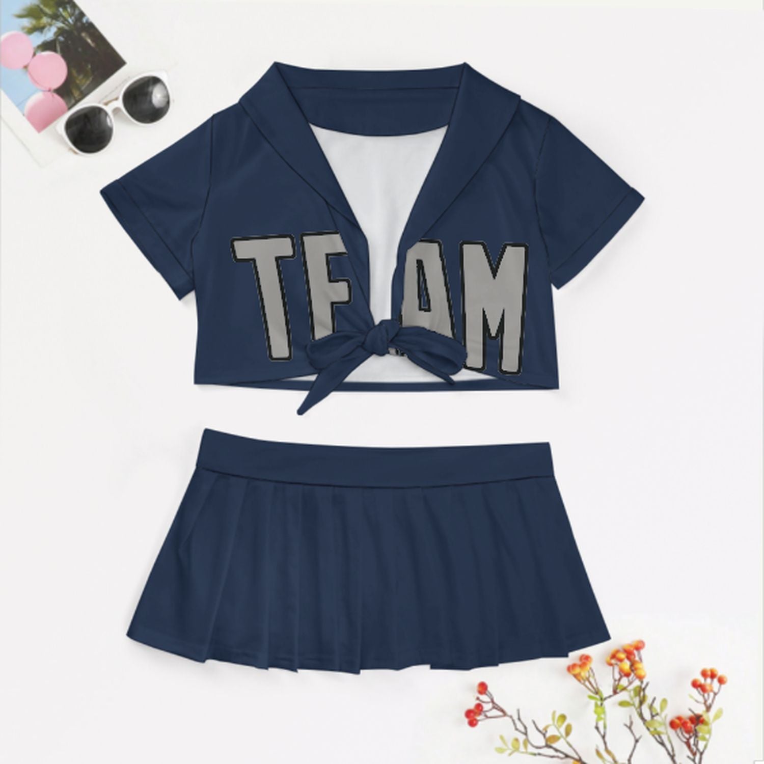 Sportliches und feminines Cheerleader Outfit Set aus atmungsaktivem Polyester mit figurbetontem Schnitt, ideal für Auftritte, Partys und Geschenke.