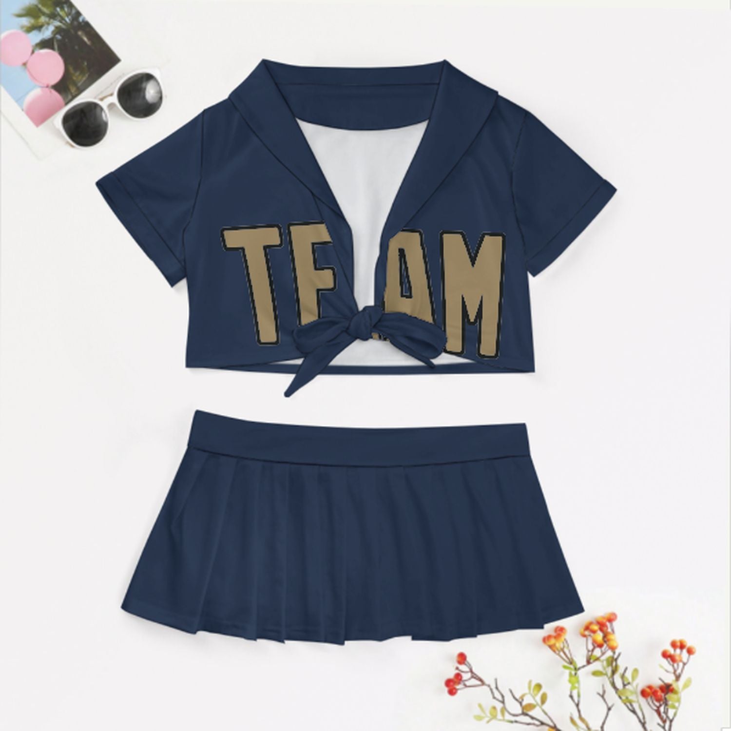 Maßgeschneidertes Marineblau Hellkhaki Cheerleader Outfit Set