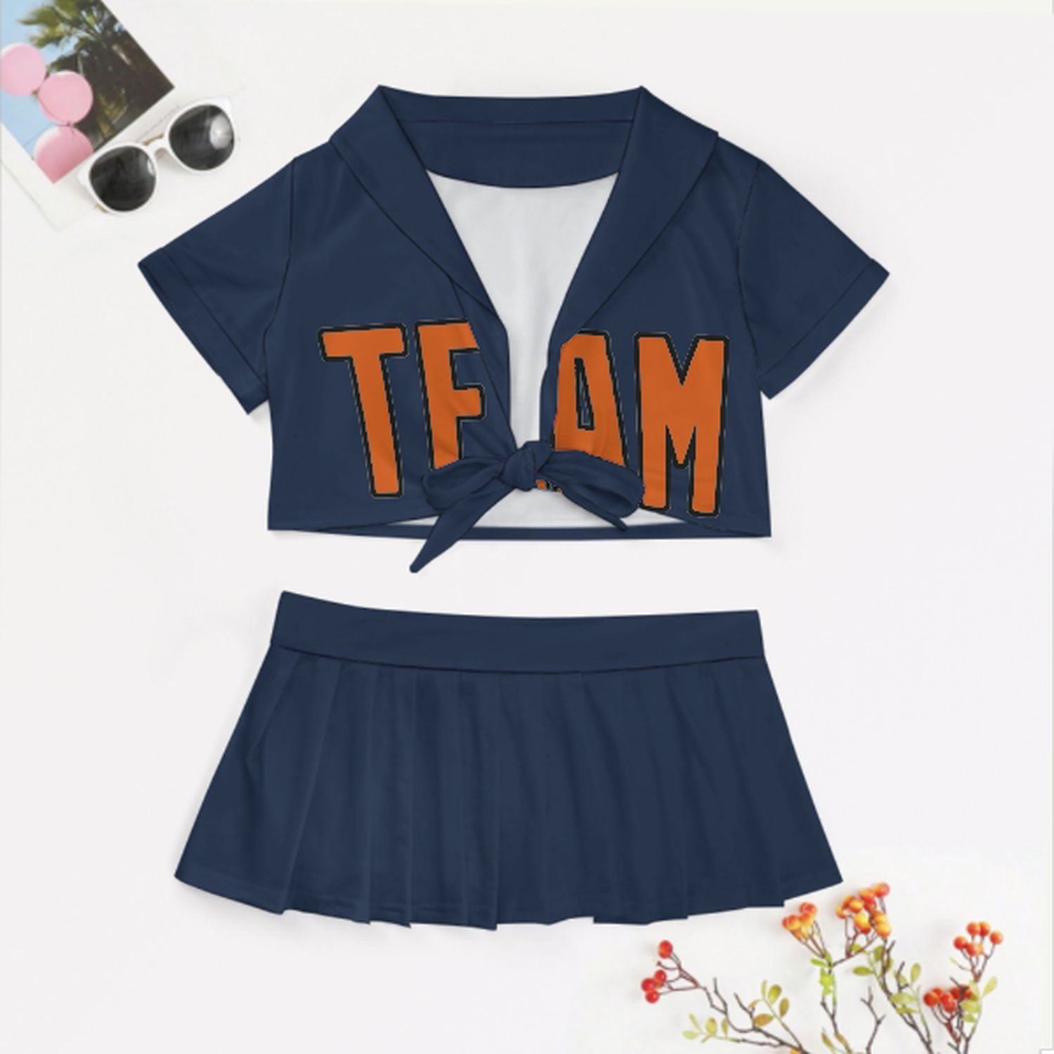 Maßgeschneidertes Marineblau Orange Cheerleader Outfit Set