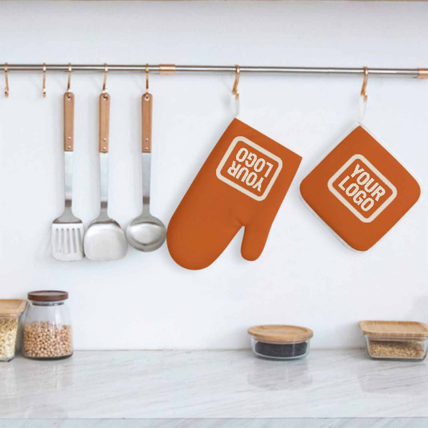 Maßgeschneidertes Orange Beige Topfhandschuh Set – 2-teilig