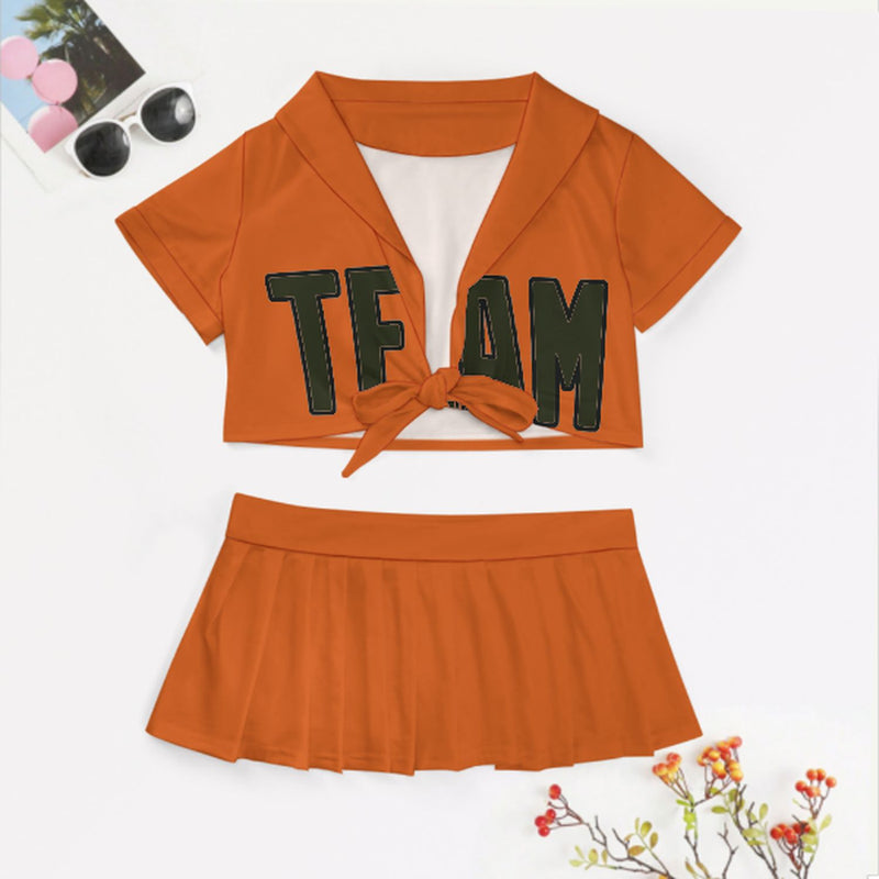 Maßgeschneidertes Orange Dunkles Oliv Cheerleader Outfit Set