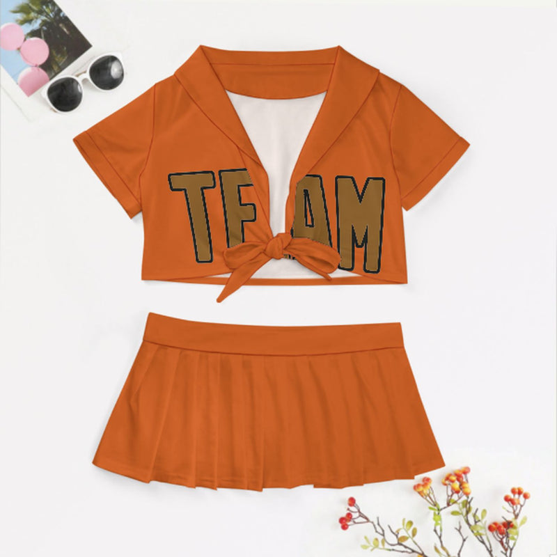 Maßgeschneidertes Orange Khaki Cheerleader Outfit Set