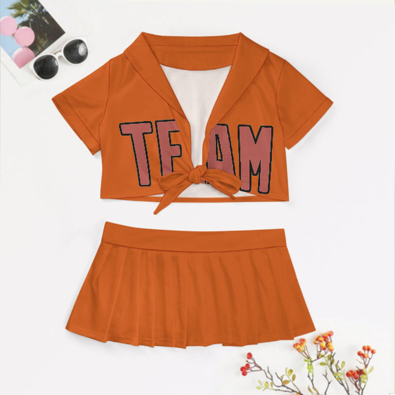 Maßgeschneidertes Orange Kupferrose Cheerleader Outfit Set