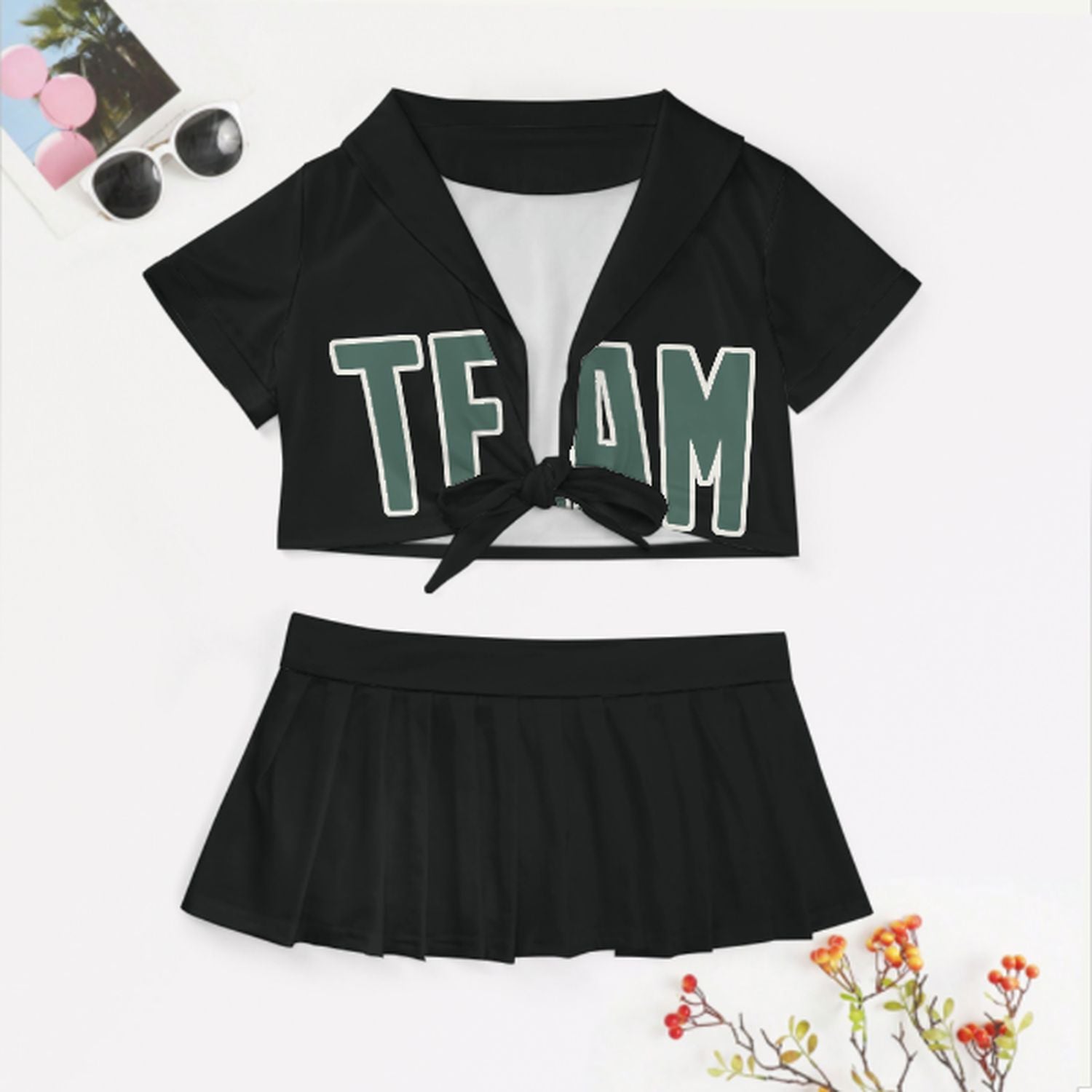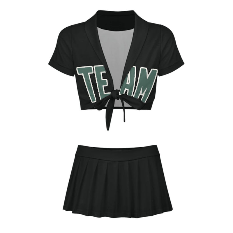 Maßgeschneidertes Schwarz Blaugrün Cheerleader Outfit Set