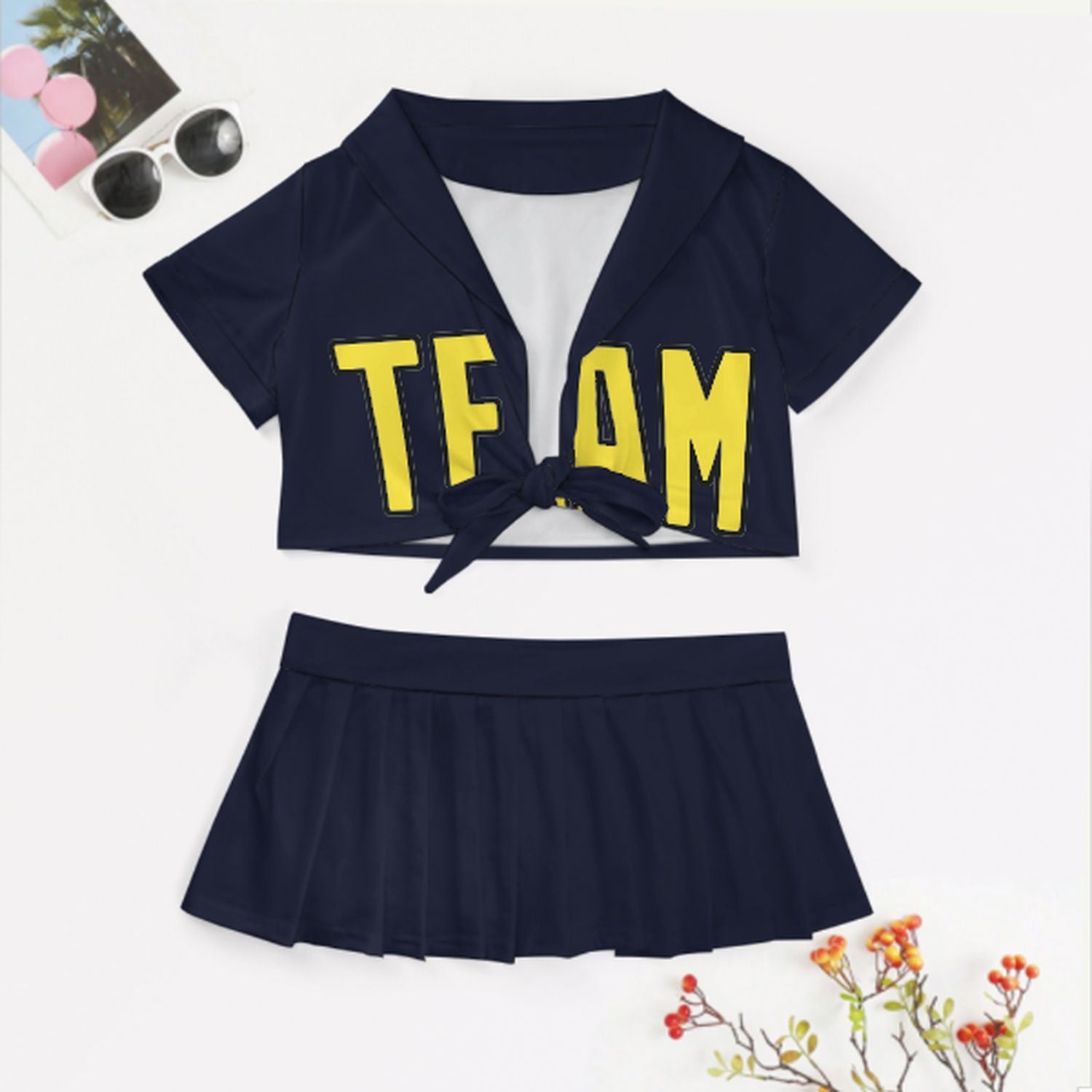 Sportliches und feminines Cheerleader Outfit Set aus atmungsaktivem Polyester mit figurbetontem Schnitt, ideal für Auftritte, Partys und Geschenke.