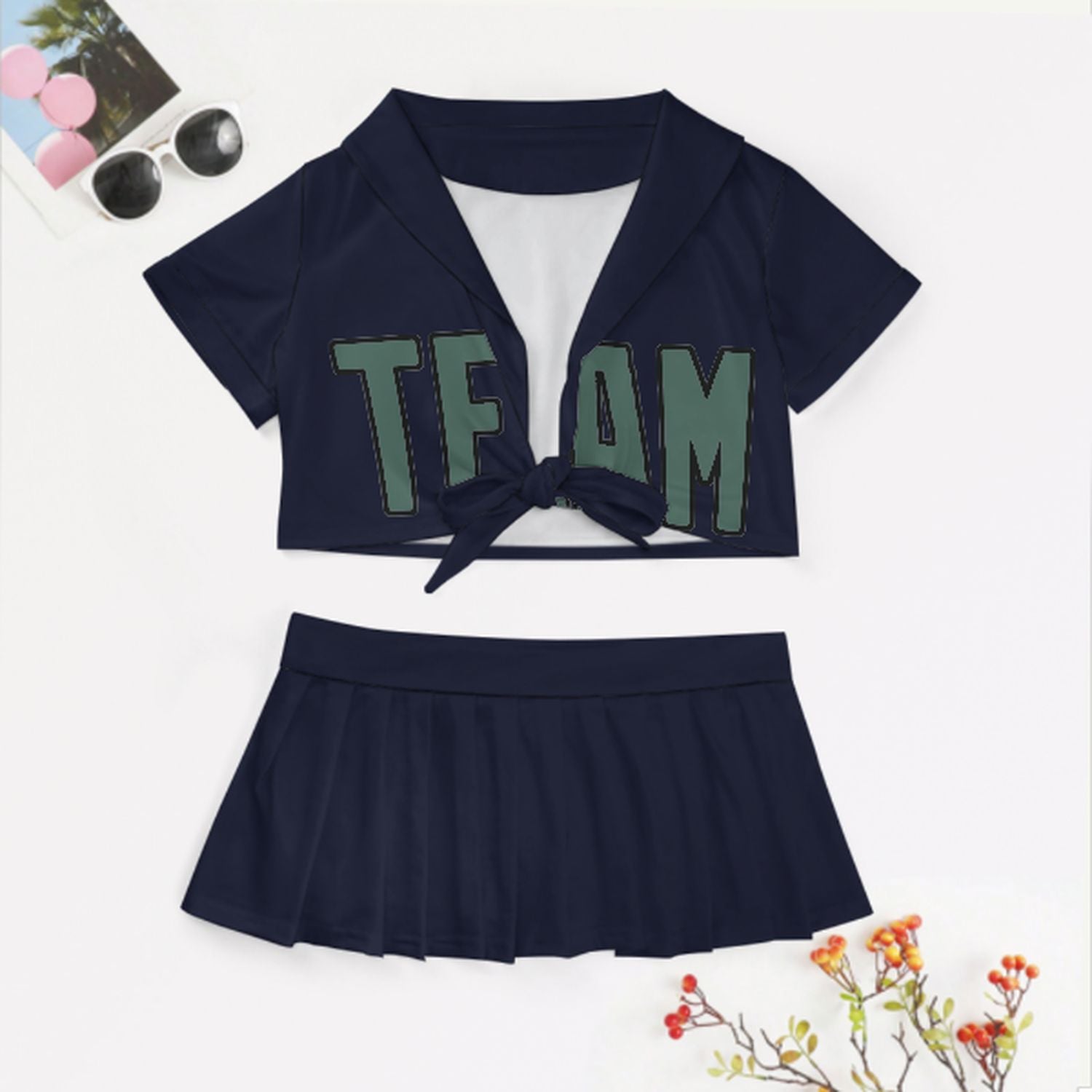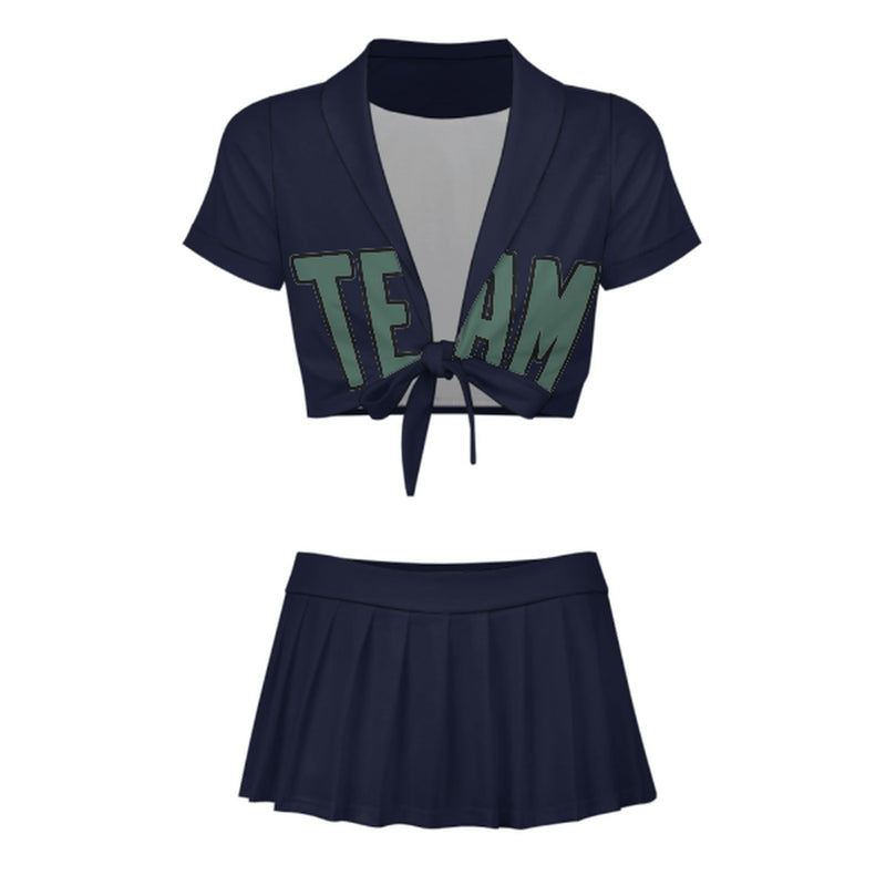 Maßgeschneidertes Stahlblau Blaugrün Cheerleader Outfit Set