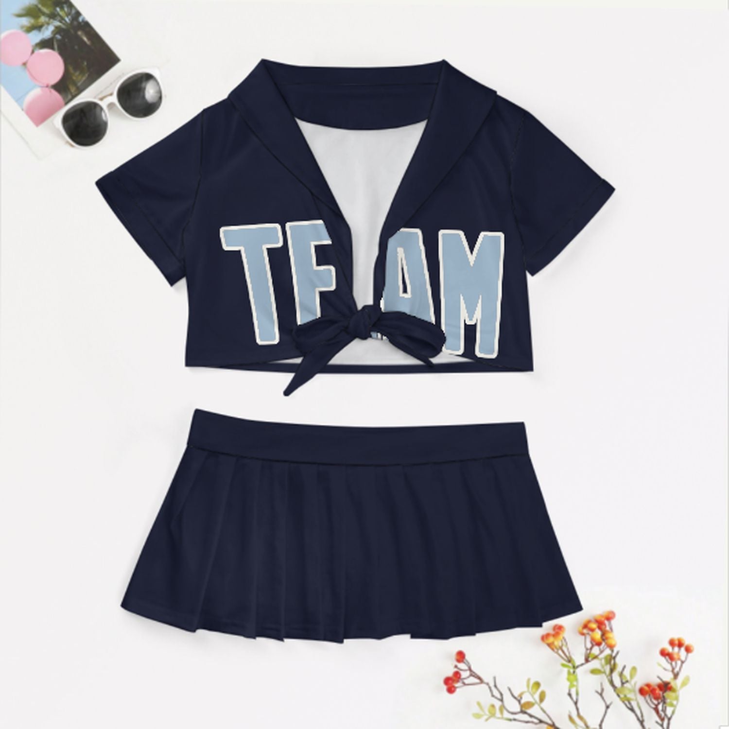 Maßgeschneidertes Stahlblau Hellblau Cheerleader Outfit Set