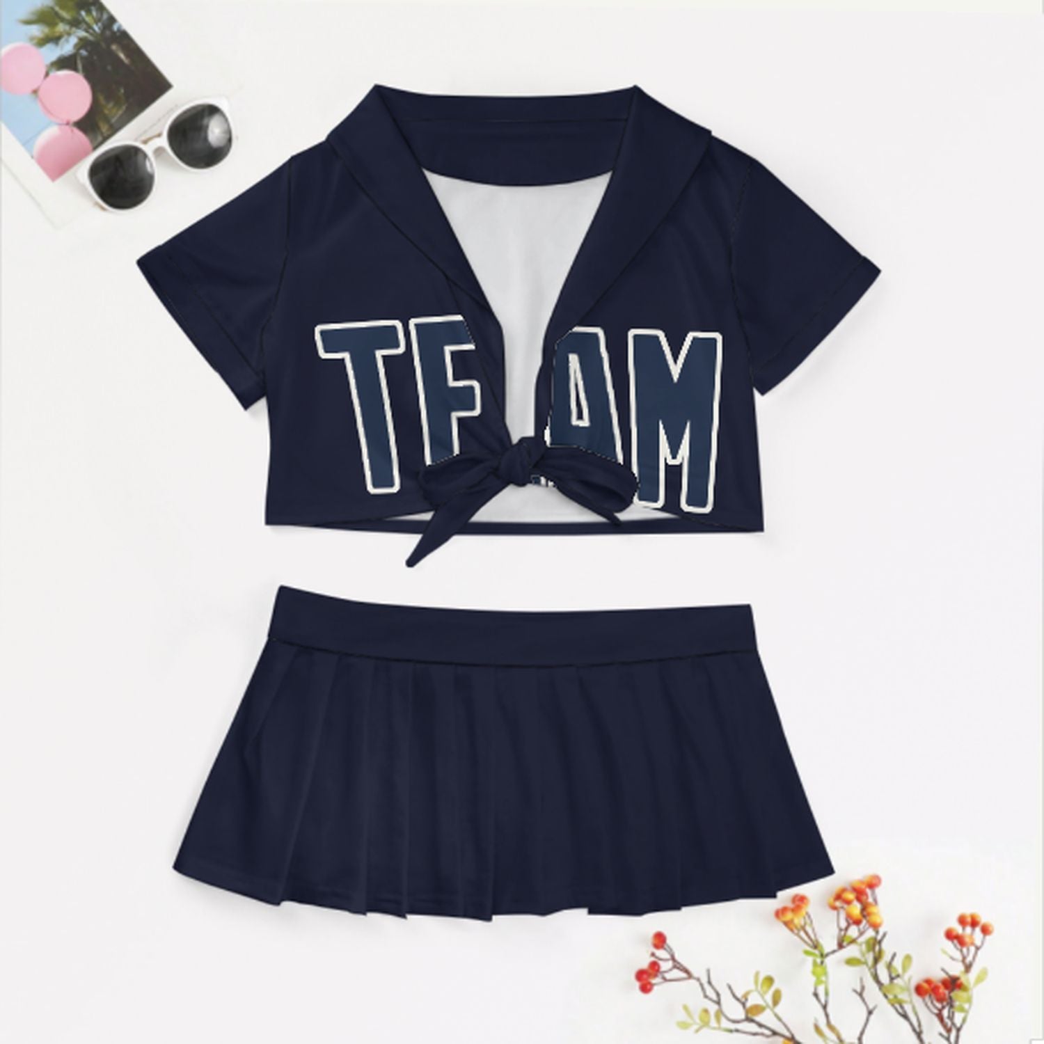 Sportliches und feminines Cheerleader Outfit Set aus atmungsaktivem Polyester mit figurbetontem Schnitt, ideal für Auftritte, Partys und Geschenke.