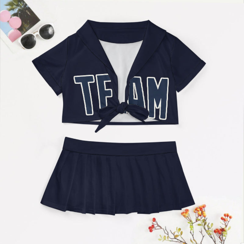 Maßgeschneidertes Stahlblau Marineblau Cheerleader Outfit Set