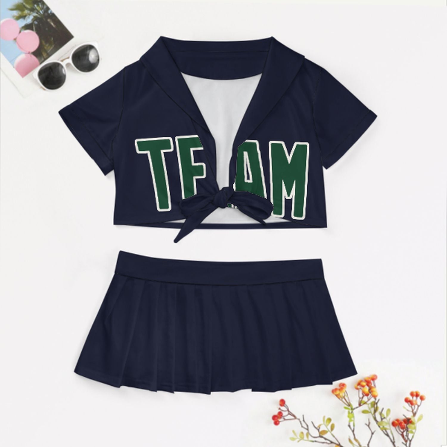 Sportliches und feminines Cheerleader Outfit Set aus atmungsaktivem Polyester mit figurbetontem Schnitt, ideal für Auftritte, Partys und Geschenke.