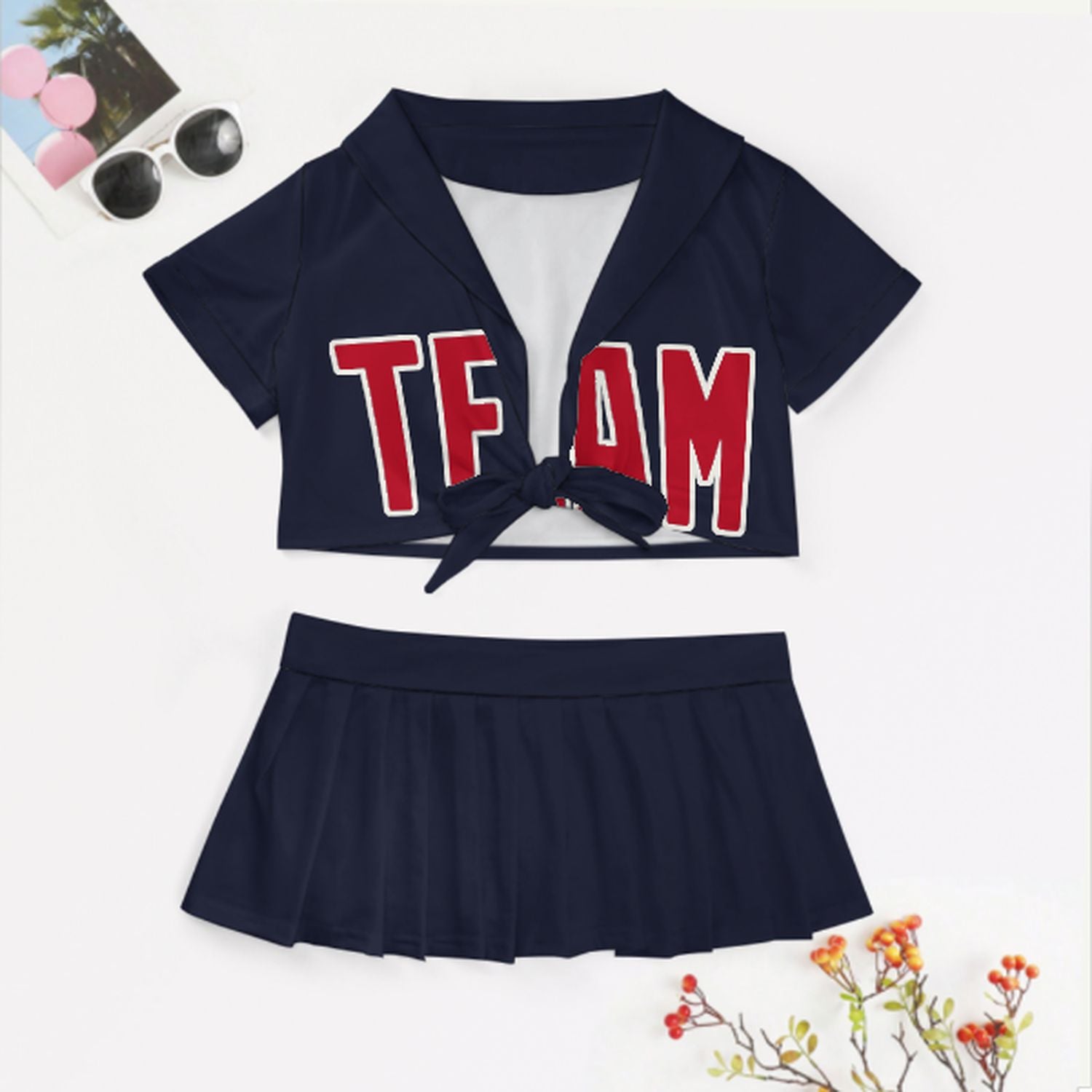 Maßgeschneidertes Stahlblau Rot Cheerleader Outfit Set