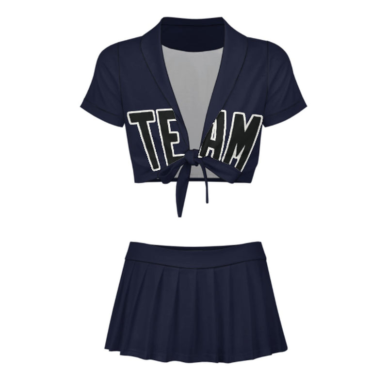 Maßgeschneidertes Stahlblau Schwarz Cheerleader Outfit Set