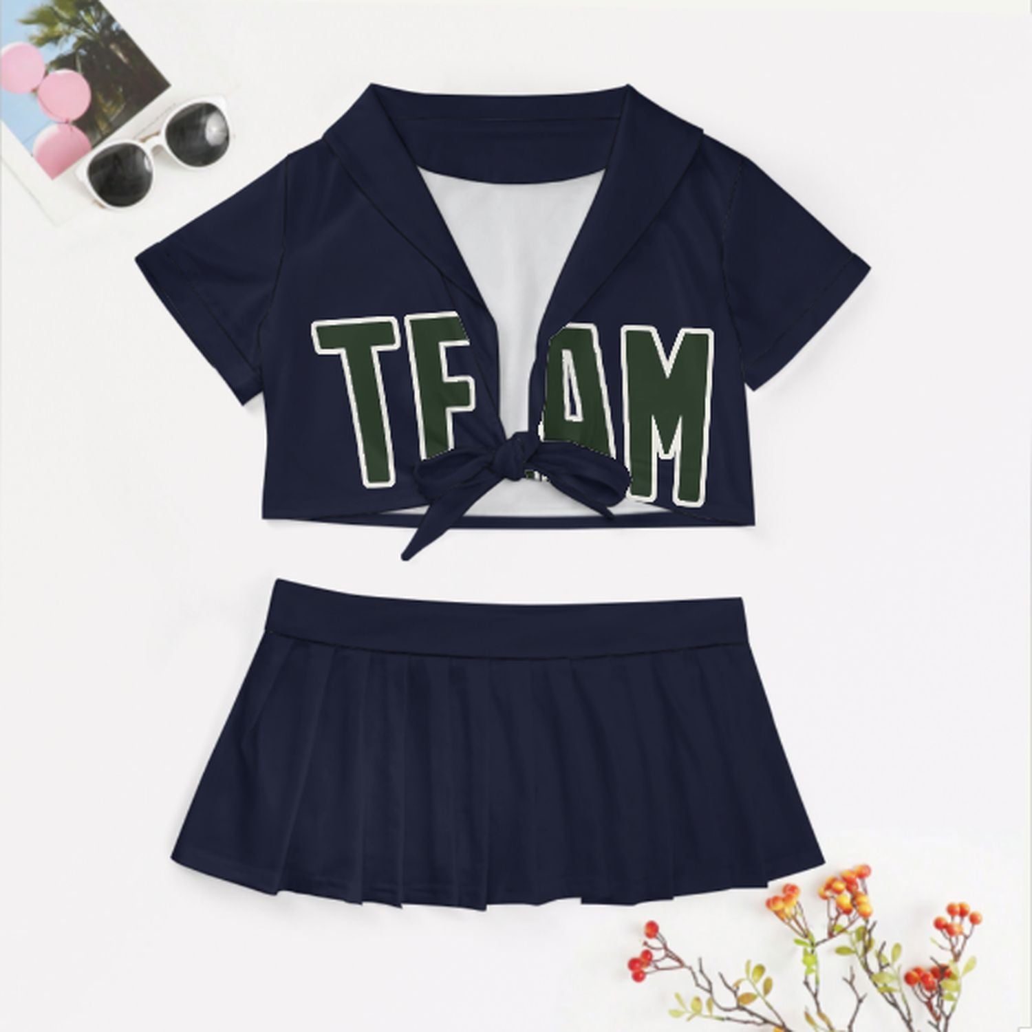 Maßgeschneidertes Stahlblau Tannengrün Cheerleader Outfit Set