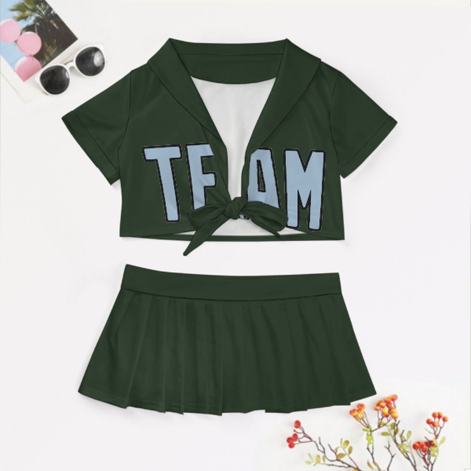 Maßgeschneidertes Tannengrün Hellblau Cheerleader Outfit Set