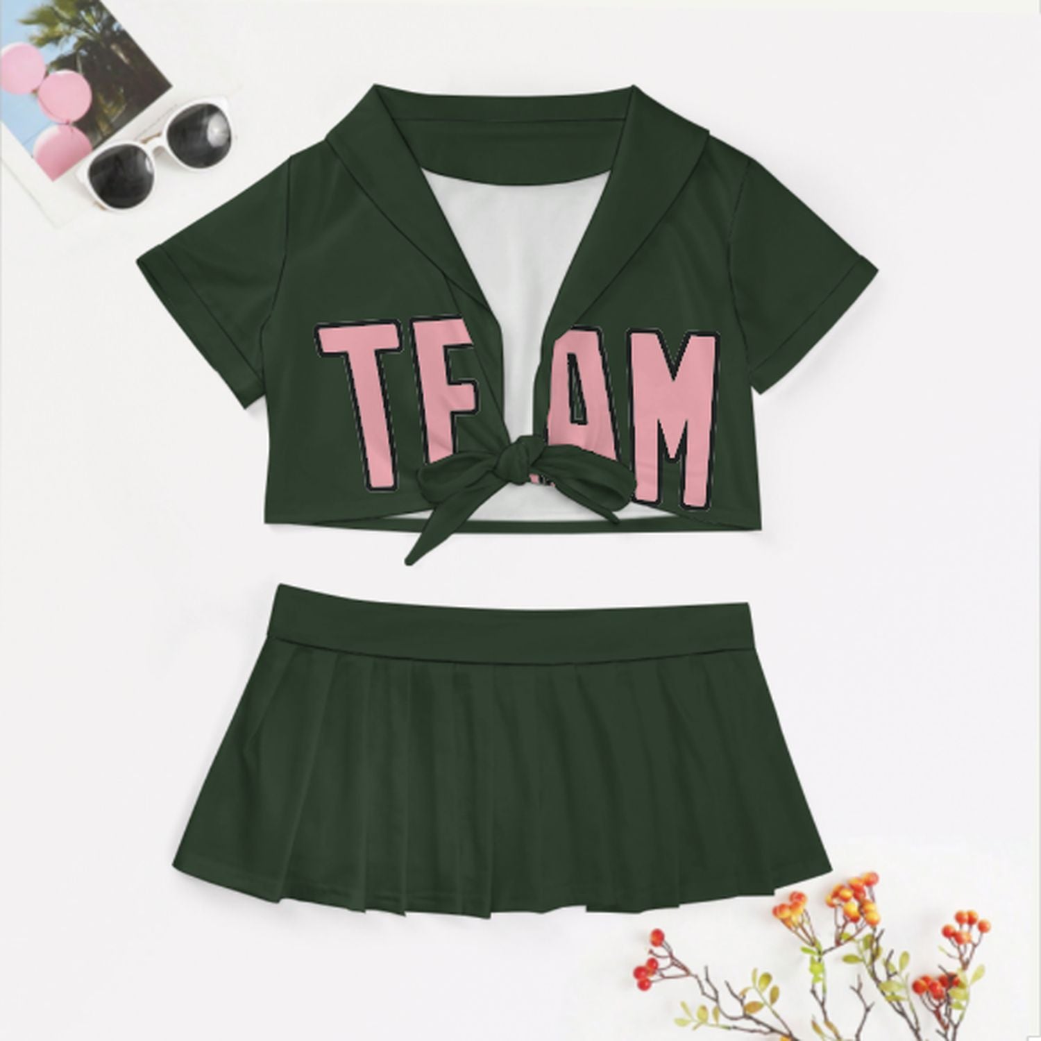 Maßgeschneidertes Tannengrün Rosa Cheerleader Outfit Set