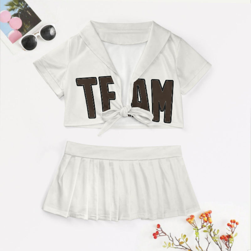 Maßgeschneidertes Weiß Braun Cheerleader Outfit Set