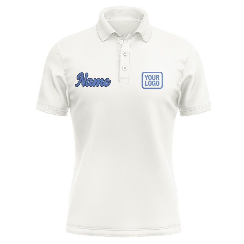 Maßgeschneidertes Weiß Himmelblau Polo Shirt